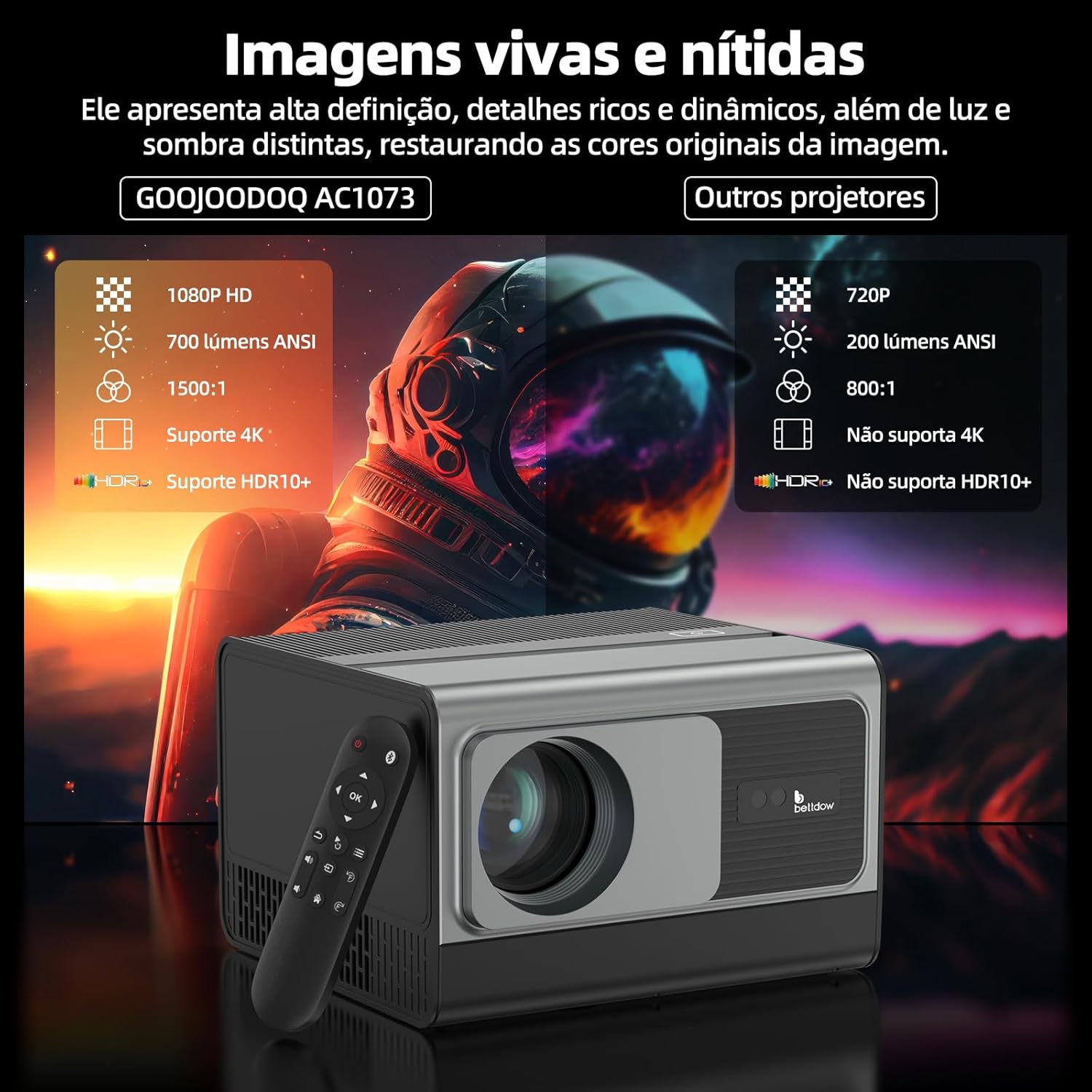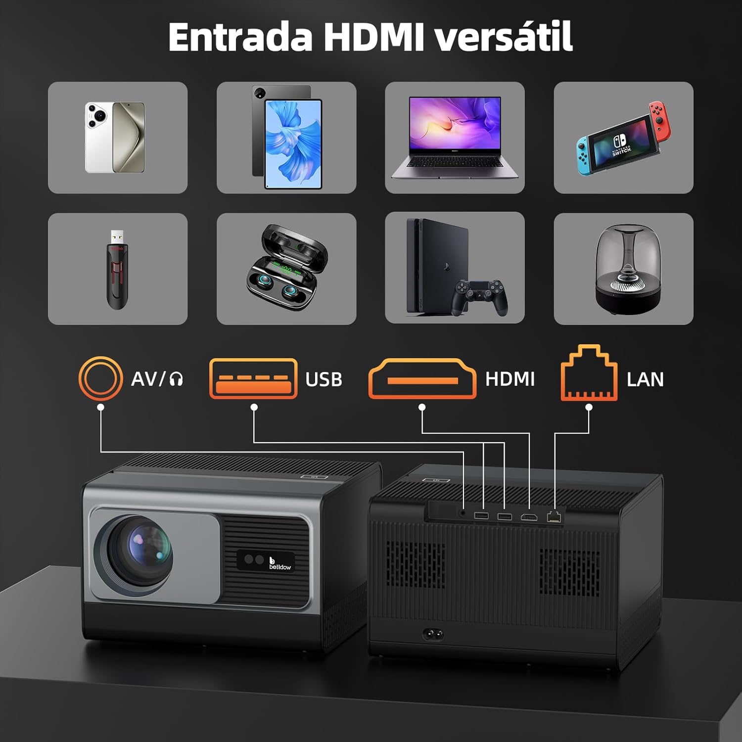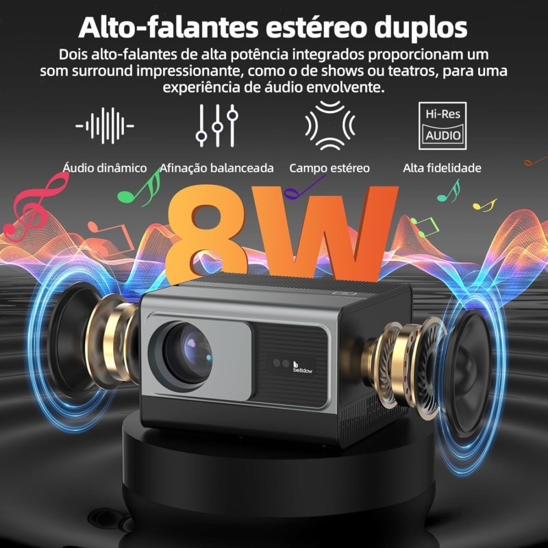 Bettdow Projetor 4k 8k 24000 Lumens Hd 1080p Compatível Completo De Android 12, Smart Projetores Retroprojetor Portatil 700 ANSI WiFi6 BT4,2, Auto Correção Trapezoidal, Foco Eletronico